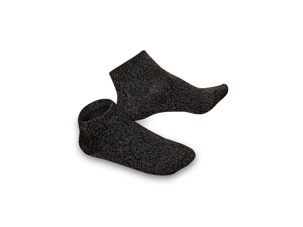 These socks contain 14% silver fiber. The silver is on the outer side of the microfiber base yarn. Microfiber is considered a material of the future – soft, pleasant on the skin, and easy to wash many times.