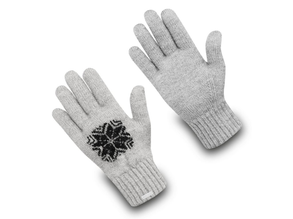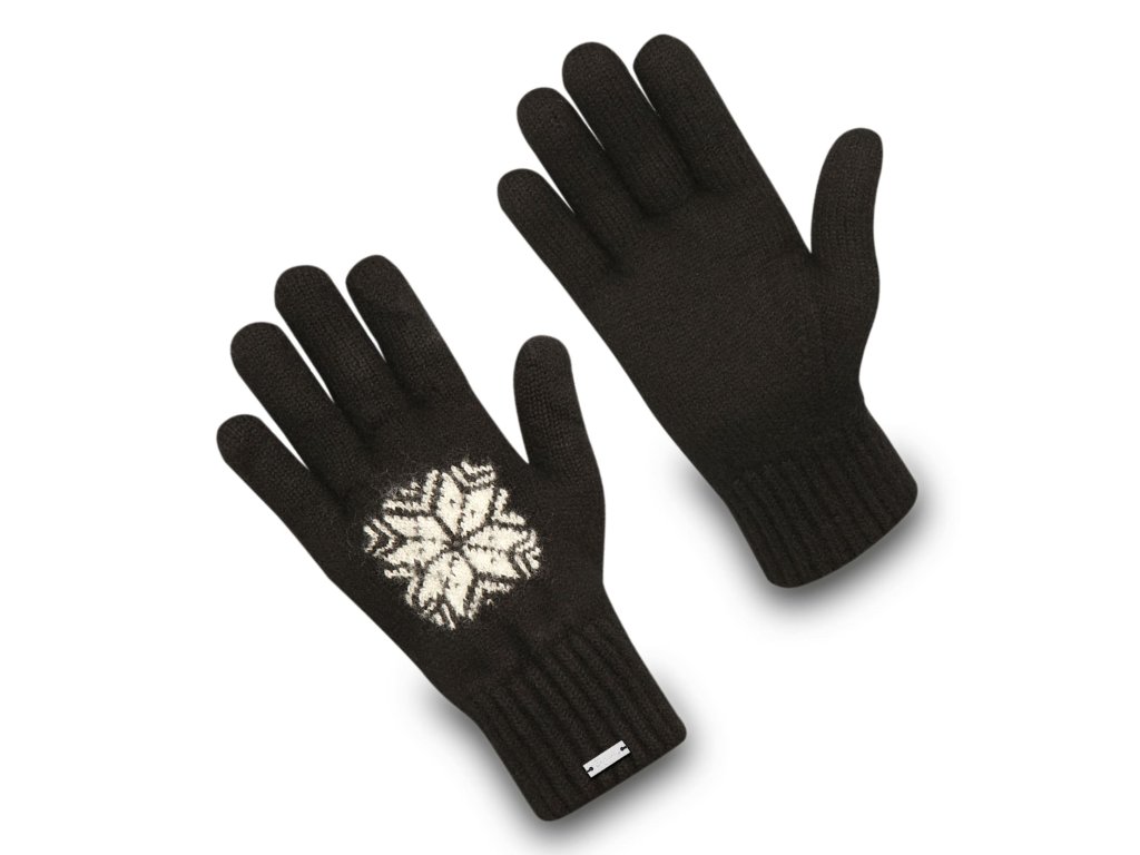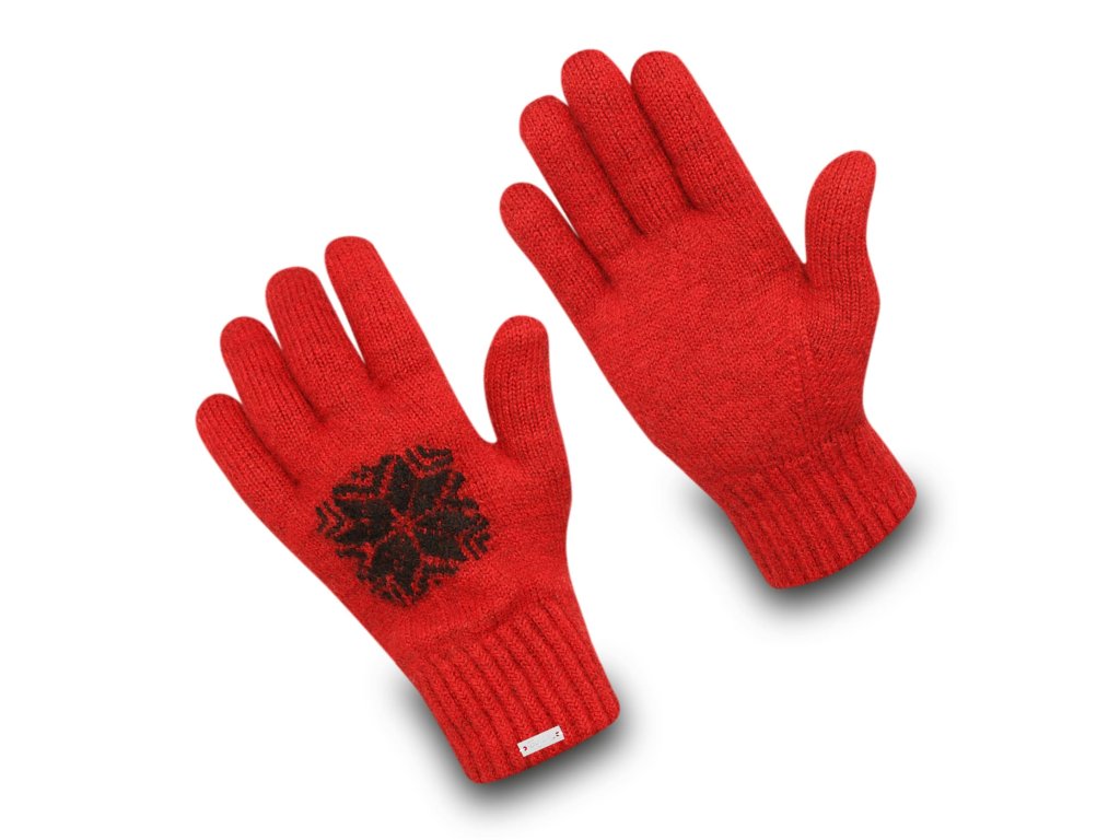 Gloves made from virgin wool with a Norwegian pattern, brushed inside with natural thistles, knitted in the Czech Republic.