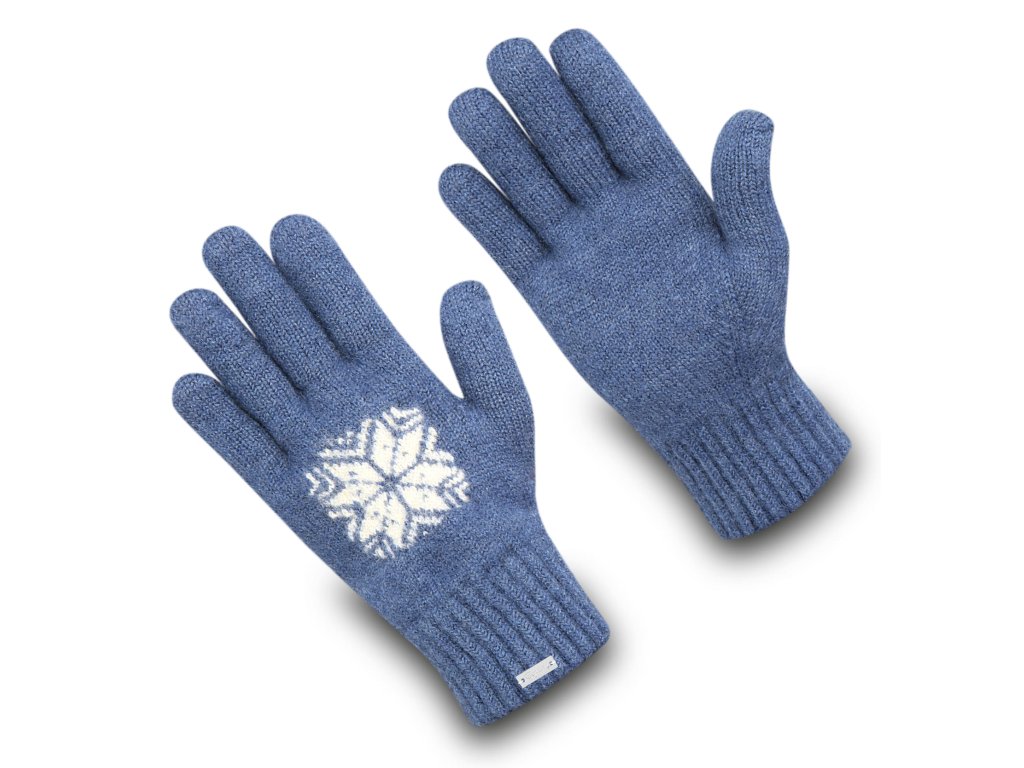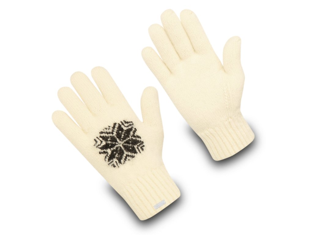 Rukavice z panenské vlny s norským vzorem, uvnitř počesané přírodními bodláky, upletené v České republice.